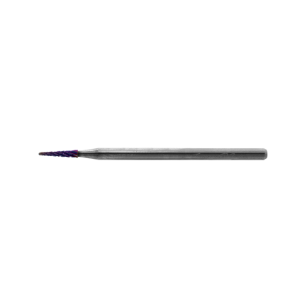 Fresa cónica dentada de carburo de tungsteno y grano 3 extra grueso (3XC) para la retirada de esculpidos. Su cabezal universal, permite su uso en cualquier torno.