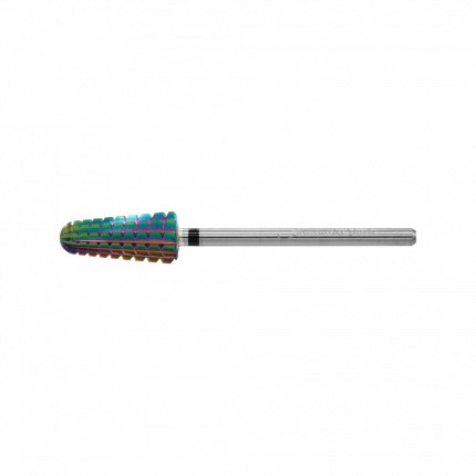 Fresa dentada de carburo de tungsteno y grano grueso (C) para perfeccionar el area de almendra y el contorno inferior de la uña esculpida. Su cabezal universal, permite su uso en cualquier torno.