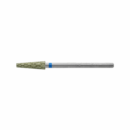 Fresa cónica (2.4 mm) de punta de diamante y grano medio (M) para la preparación de uña natural y la realización de manicura rusa/combinada. Su cabezal universal, permite su uso en cualquier torno.