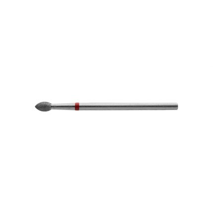 Fresa lágrima de punta de diamante y grano fino (F) para la realización de manicura rusa y manicura combinada. Su cabezal universal, permite su uso en cualquier torno.