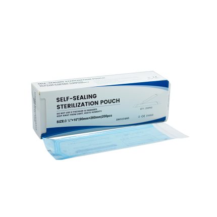 Caja de 200 bolsas con sello adhesivo para esterilización en autoclave. Tamaño pequeño (9cm x 26cm). *Este producto no admite cambios ni devoluciones si su precinto de seguridad está abierto o dañado.