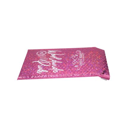 Sobre rosa holográfico con relleno de burbuja acolchado y sello de autocierre. Perfecto para envíos.