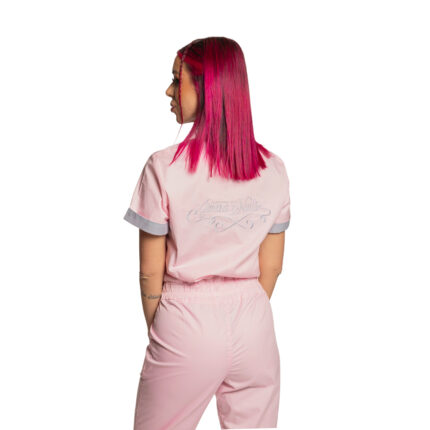 Cómodo uniforme de trabajo JIMENA NAILS. Está especialmente diseñado para los trabajos y servicios en salón y cabina. Ergonómigo y transpirable, ideal para adoptar cualquier postura sin sentir incomodidad ni calor. TALLA L Fabricado en la UE.