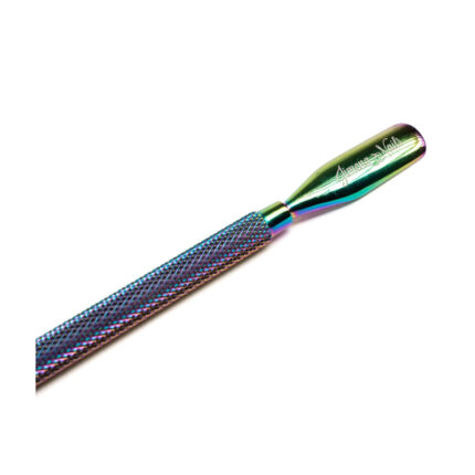 Empujador de cutículas de acero inoxidable con doble cabezal: sirve para empujar la cutícula hacia atrás y para retirar los restos de cutícula de la uña. No contiene níquel.