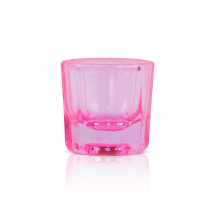 Godet de cristal pequeño en color rosa. Perfecto para depositar líquidos, polvo acrílico y tinte de cejas/pestañas.