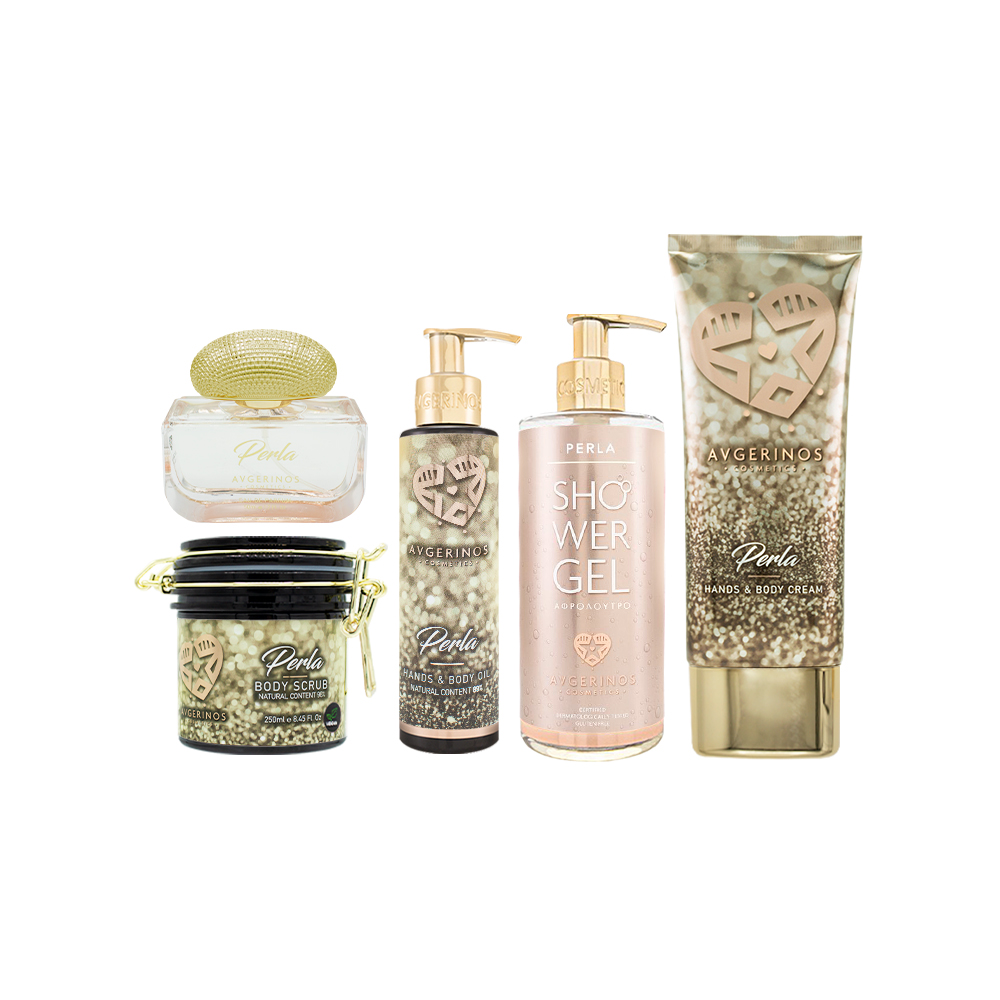 Disfruta de la gama Perla al completo con un precio más económico: crema + aceite + body scrub + shower gel + perfume. Cosmética natural, vegana y sin parabenos.