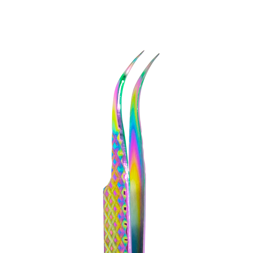 Pinza curva profesional de acero inoxidable para la aplicación de extensiones de pestañas.