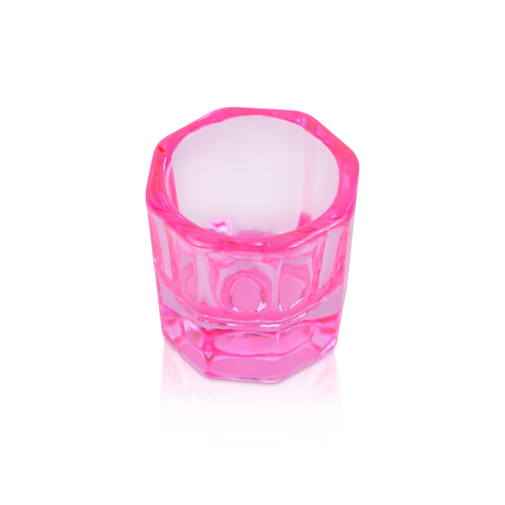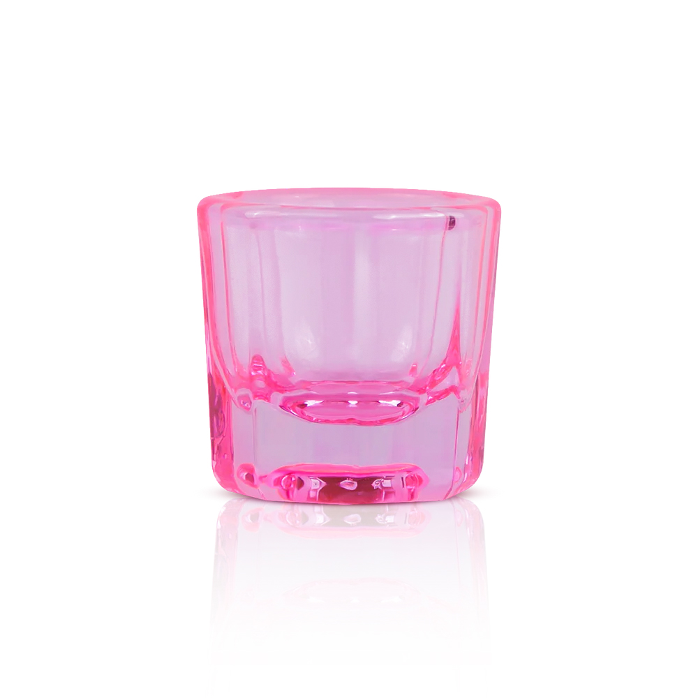Godet de cristal pequeño en color rosa. Perfecto para depositar líquidos, polvo acrílico y tinte de cejas/pestañas.