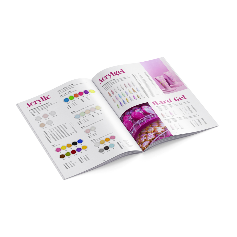 Catálogo impreso de toda la línea de productos Jimena Nails. Incluye todos los productos en sus diferentes formatos, una pequeña descripción de cada uno de ellos y todas las cartas de color. También podrás consultar los puntos de venta físicos (JN Shops) de todo el mundo.