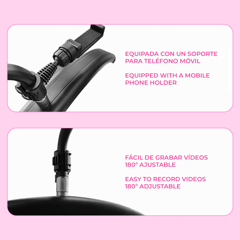 - Incluye un soporte para colocar el teléfono de manera fija y poder grabar contenido para redes sociales.