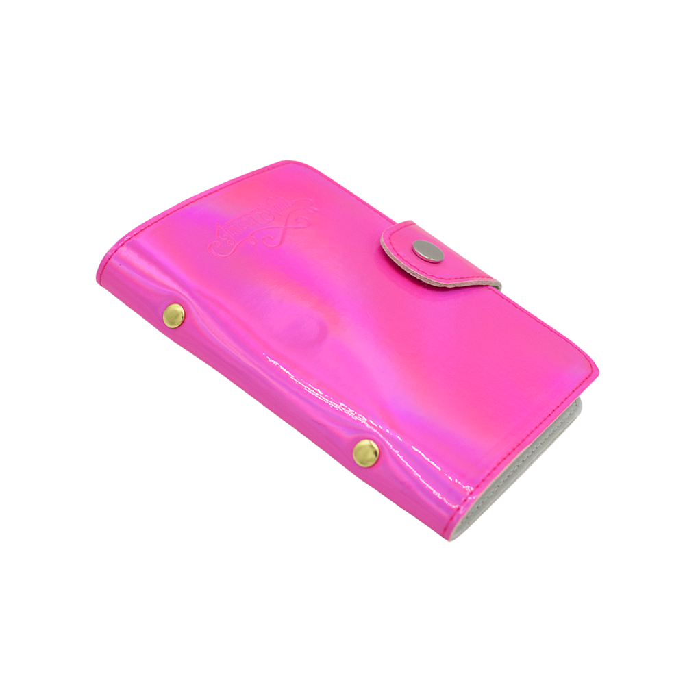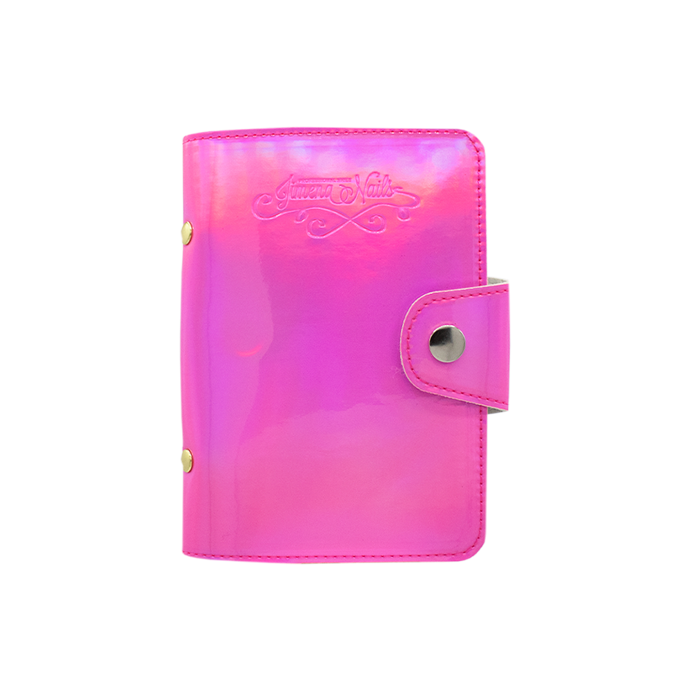 Estuche fucsia holográfico (10×15) de 10 páginas para organizar las placas de stamping.