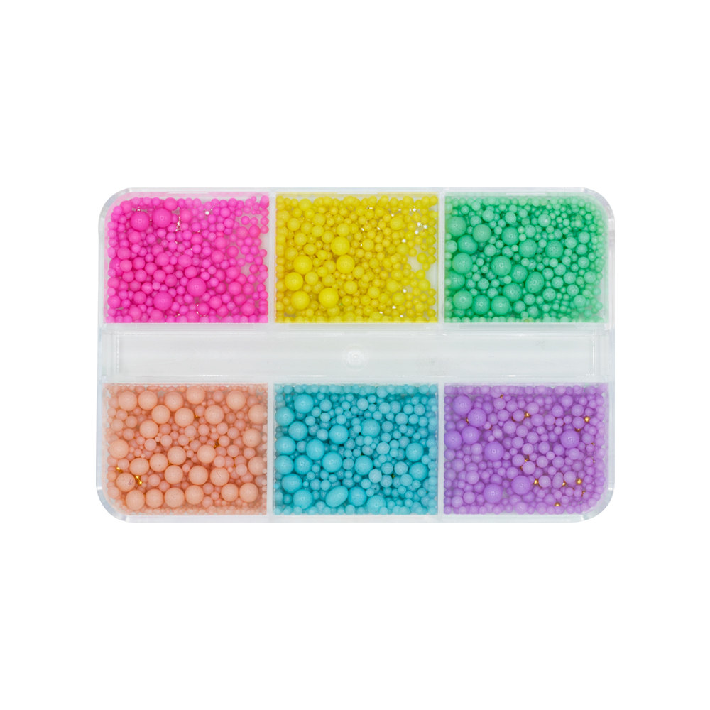 Pack de bolitas de caviar en 6 colores diferentes y tamaños mix. Perfecto para realizar decoraciones y nail art.