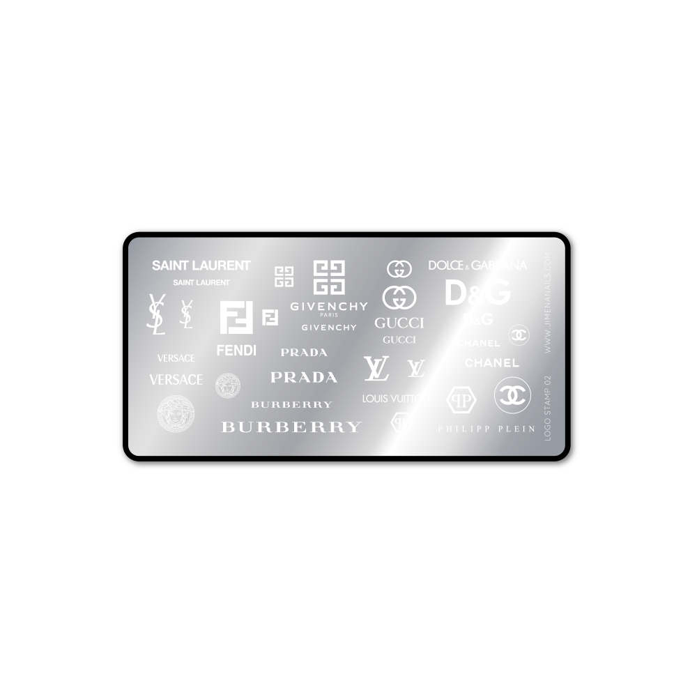 Placa con diseños de logos de marcas para realizar la técnica de stamping.