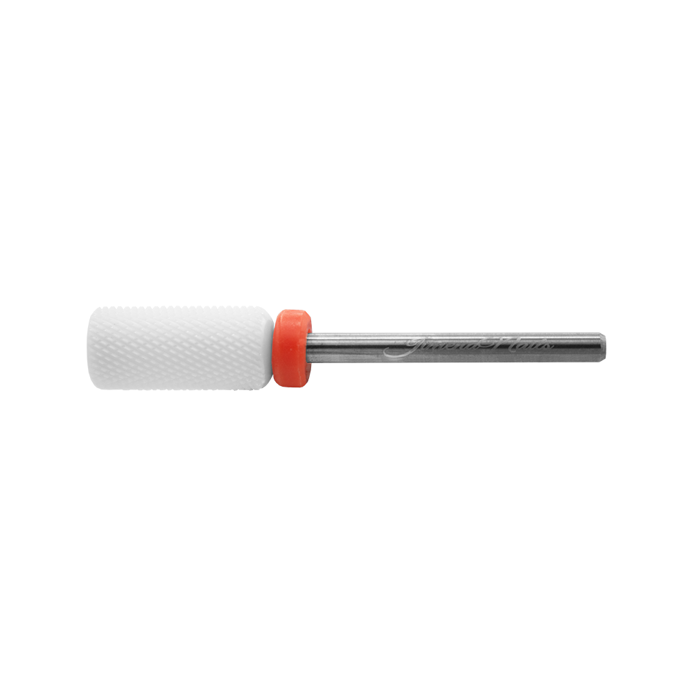 Fresa dentada de cerámica y grano fino (F) para la eliminación de esmaltado semipermanente sin dañar la uña natural. Su cabezal universal, permite su uso en cualquier torno.