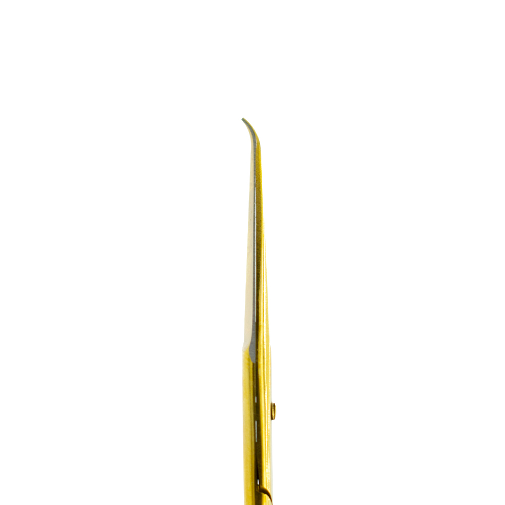 Tijeras profesionales de manicura de acero inoxidable. Su punta extremadamente corta y fina permite eliminar todos los restos de piel en zonas específicas, para una preparación de la uña aún más precisa.
