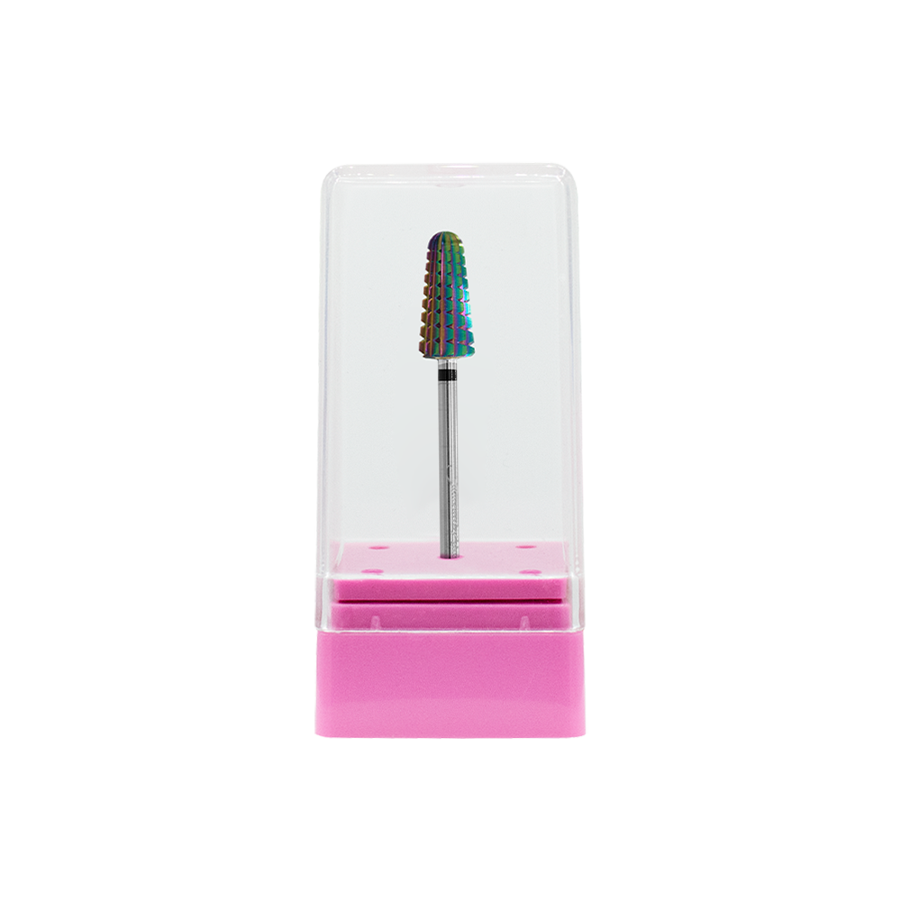 Fresa cónica dentada de carburo de tungsteno y grano 3 extra grueso (3XC) para la retirada de esculpidos. Su cabezal universal, permite su uso en cualquier torno.