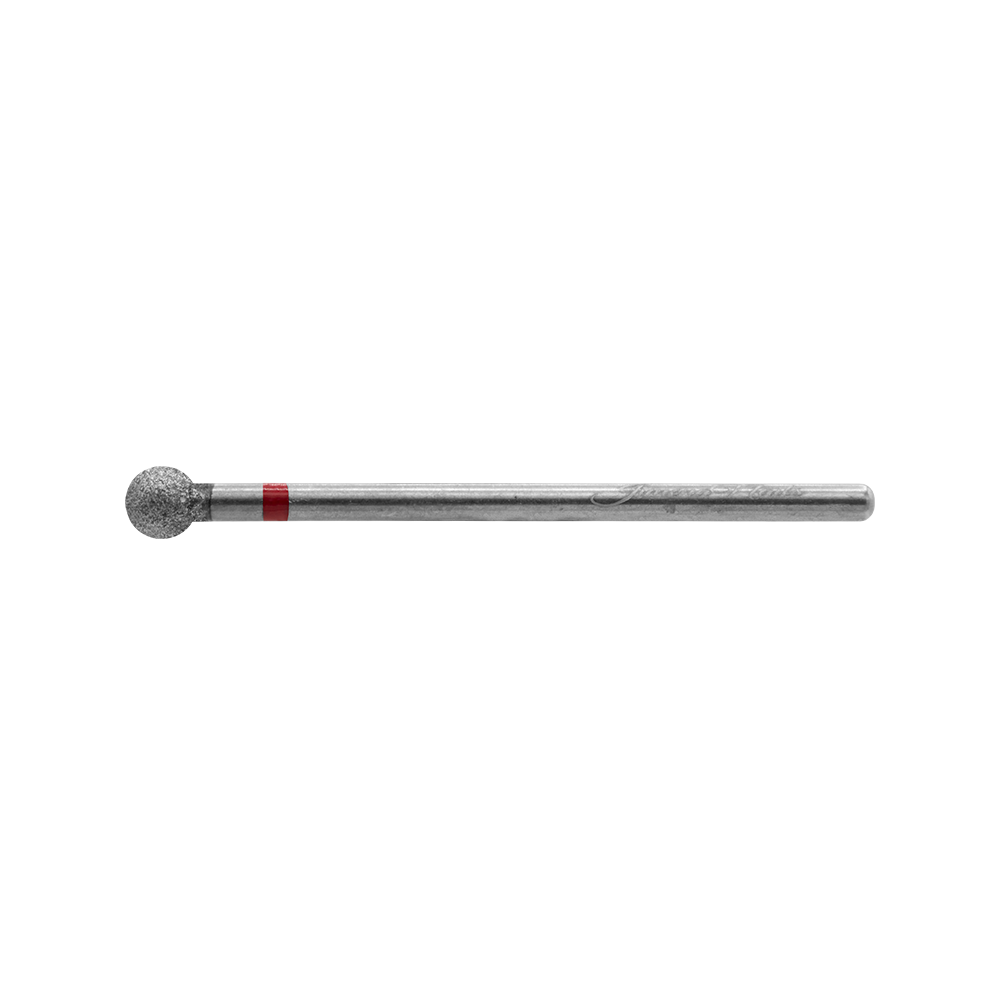 Fresa redonda de punta de diamante y grano fino (F) para la realización de manicura rusa y manicura combinada. Su cabezal universal, permite su uso en cualquier torno.