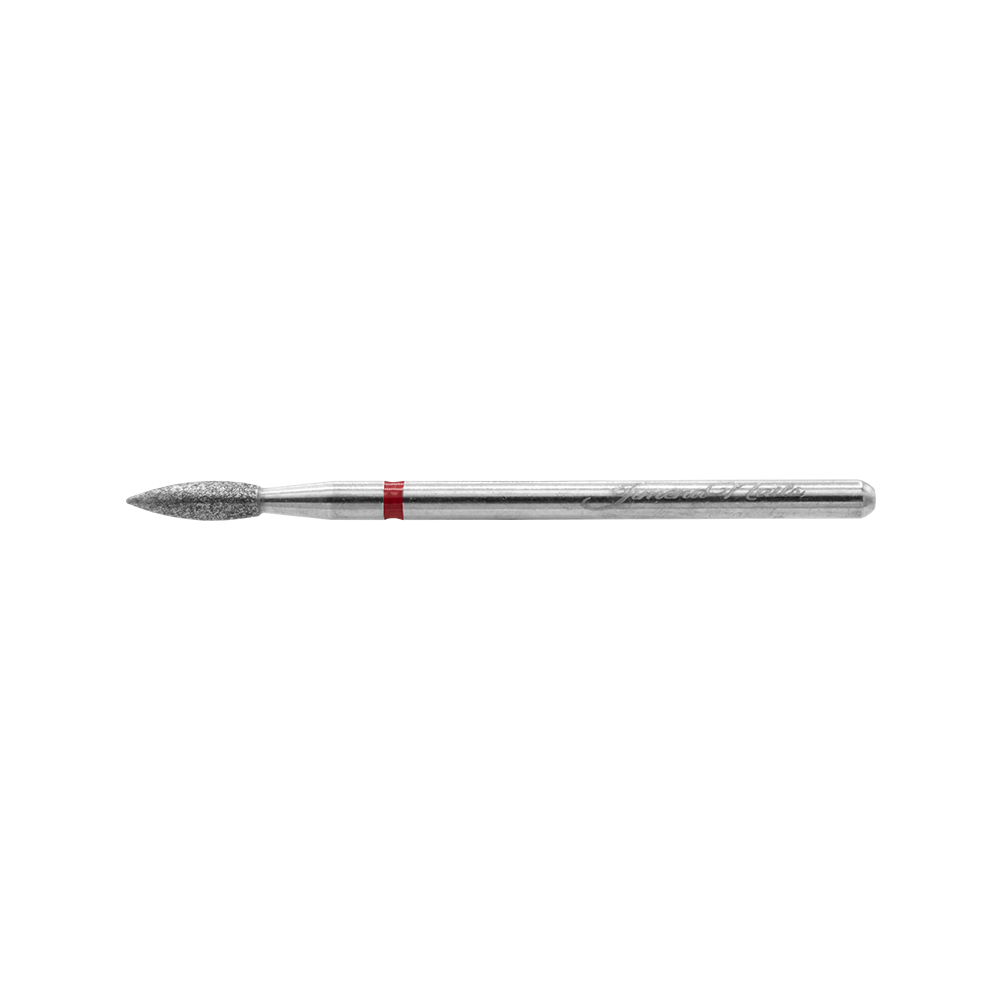 Fresa lágrima de punta de diamante y grano fino (F) para la realización de manicura rusa y manicura combinada. Su cabezal universal, permite su uso en cualquier torno.