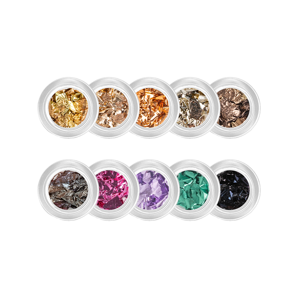 Set de 10 unidades de pan de oro de diferentes colores. ¡Perfecto para tus encapsulados!