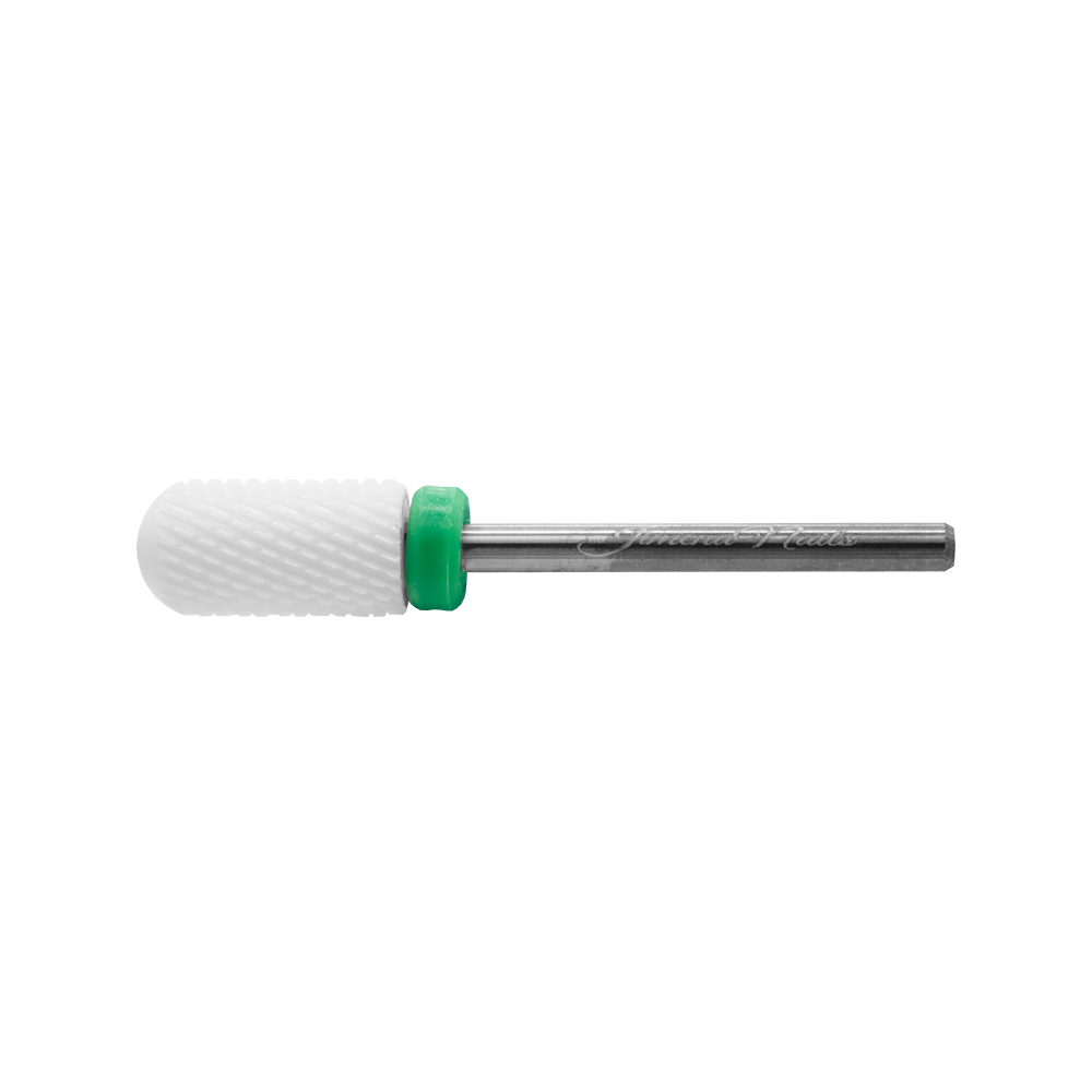 Fresa dentada con punta de seguridad, de cerámica y grano grueso (C) para realizar limado y retiradas de esculpidos; ideal para principiantes. Su cabezal universal, permite su uso en cualquier torno.