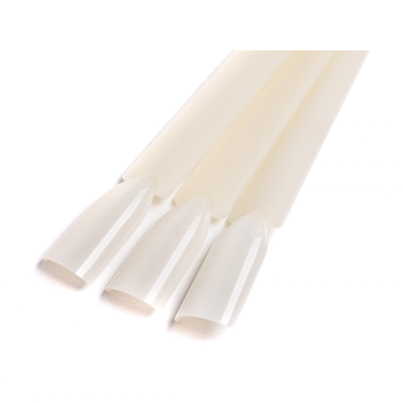 Tips de práctica cuadrados color nude con alargamiento posterior para un mejor agarre. El paquete incluye anilla de sujeción.