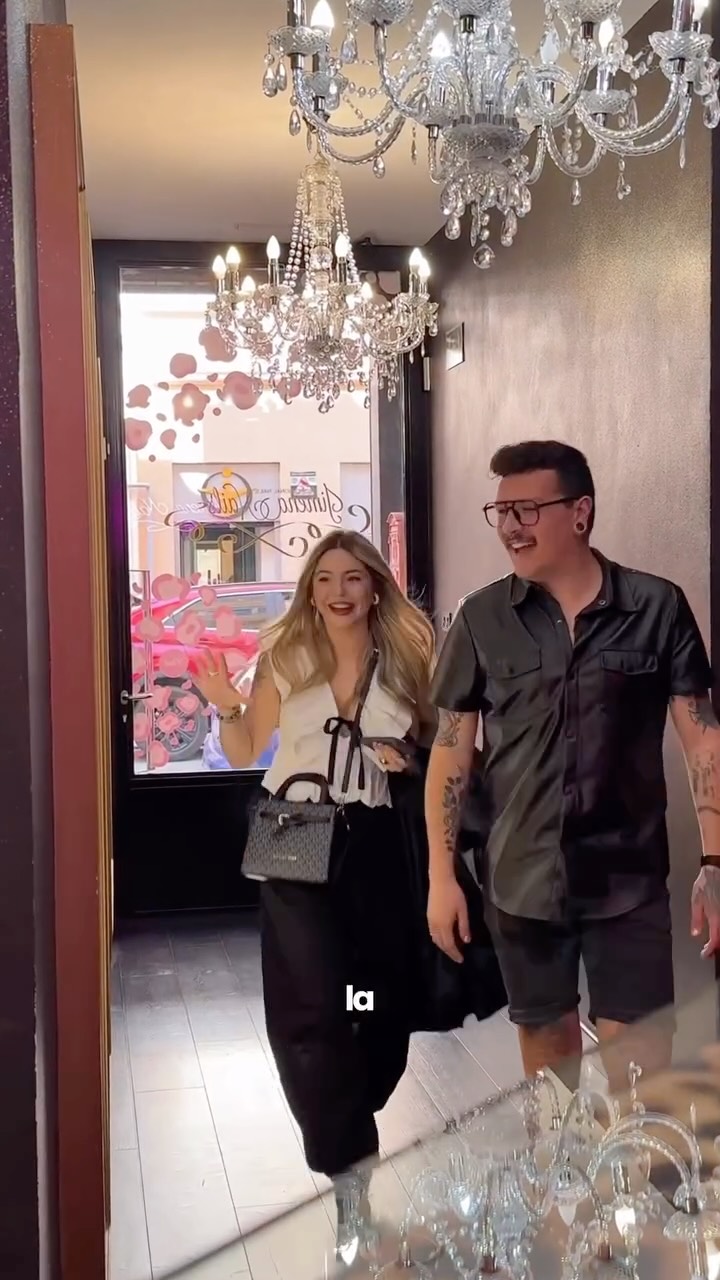 Conjunto rosa de tres piezas (pantalón, top y torera) de Jimena Nails, bordados en pedrería. ¡Te sentirás de la jimefamily!